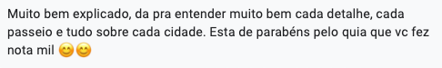 Estou compartilhando toda a viagem que fiz de carro através deste guia para que você também tenha condições de fazê-la da forma mais simples possível. Decidi colocar o valor de uma mensalidade da Netflix apenas para você desconectar ao mesmo tempo que valoriza um trabalho tão minuciosamente feito. Boa viagem :)